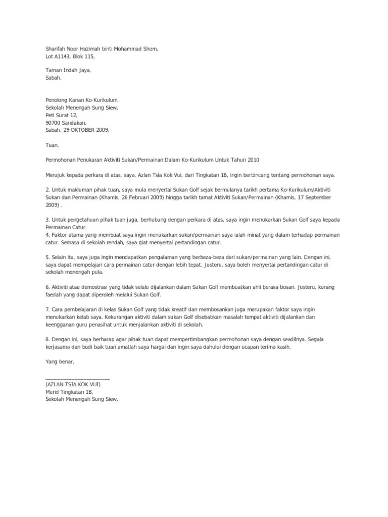 Surat Rasmi Pertukaran Kelas - Contoh Surat Rasmi Permohonan Tukar Kelas Surat 0 Otosection